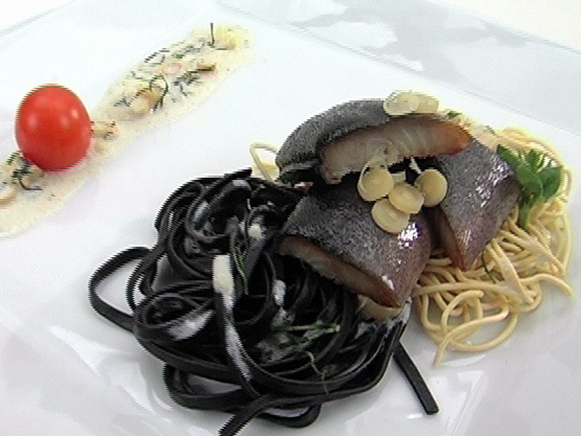 Простая лапша с копченым угрем.Состав:угорь — 60 гр;лемонградасс — 2 штуки;кокосовое молоко — 100 гр;чеснок — 1 зубчик;базилик — 1 столовая ложка;черная и белая лапша — 1 столовая ложка;соль, перец, оливковое масло — по вкусу. Язык: Русский