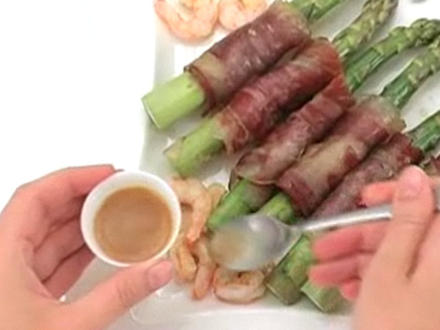 Рецепт приготовления спаржи, завернутой в ветчину. 287 калорий.Состав:спаржа — 6 стручков;оливковое масло — 2 столовых ложки;креветки — 100 гр;ветчина — 50 гр;соль, перец, вода. Язык: Русский